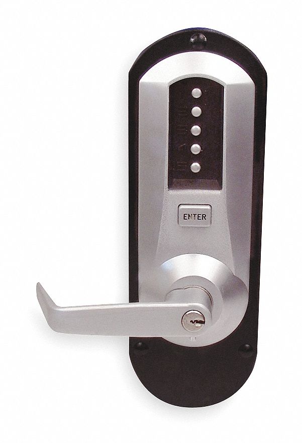 This mechanical lock with lever option elimates the material and labor expense of battery replacements has a single access code and is programmed via the keypad without removing the lock from the door.