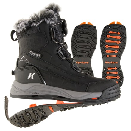 Korkers work inspired footwear systems are designed to give you better footing on a variety of surfaces.